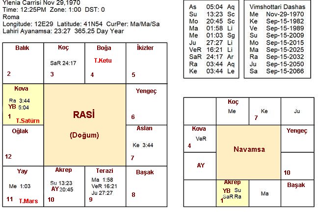 Ylenia’nın Vedik Rasi (Doğum) ve Navamsa haritaları genç kızın başına